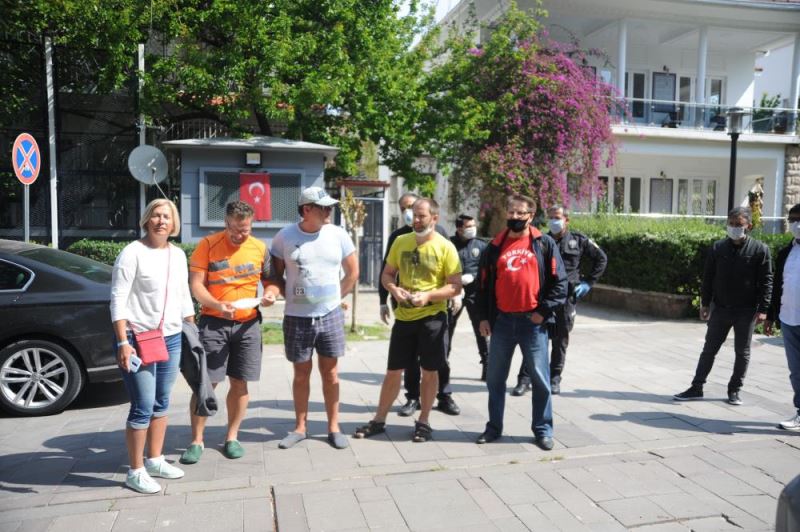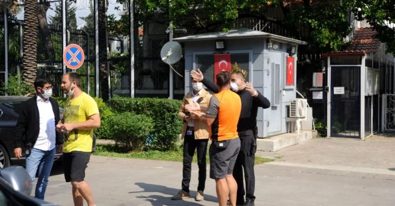 Randevularinin olmadigi söylenen turistler, konsolosluga girmekte israrci oldu. Bunun üzerine polis ekibi konsolosluk girisinde önlem aldi.