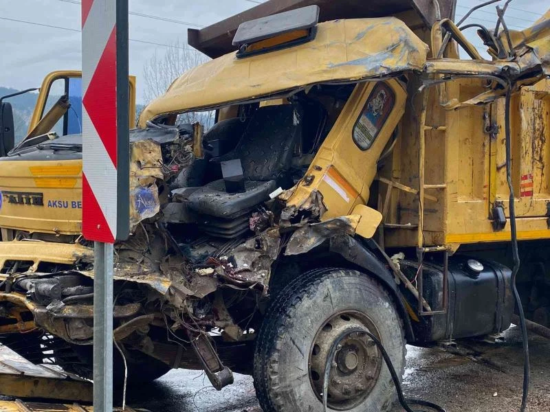 Antalya’nın Aksu ilçesinde iş makinesinin karşı yönden gelen tırla çarpıştığı kazada 1 kişi hayatını kaybetti.