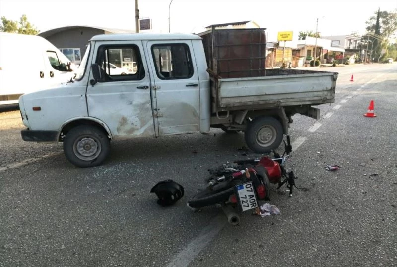 Hüseyin Özen'in (17) kullandığı 07 AOR 727 plakalı motosiklet, Abdurrahmanlar Mahallesi Şatırlı mevkisindeki yol ayrımında H.B. (55) idaresindeki 07 YAD 08 plakalı kamyonetle çarpıştı.