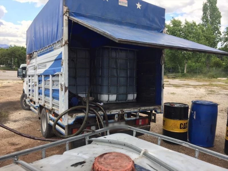 Aramada, kamyonetin kasa kısmında akaryakıt aktarımında kullanılan santrifüj pompa ve buna bağlı hortumlar ile 3 tankta 3 bin litre kaçak akaryakıt ele geçirildi.