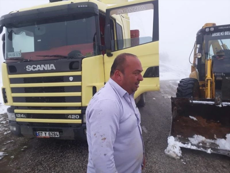 Kalkan'ın yardım çağrısı üzerine bölgeye Akseki Belediyesi Karla Mücadele Birimi ekipleri sevk edildi. Yolu iş makineleriyle açan ekipler, tır şoförüne ulaştı.