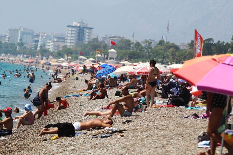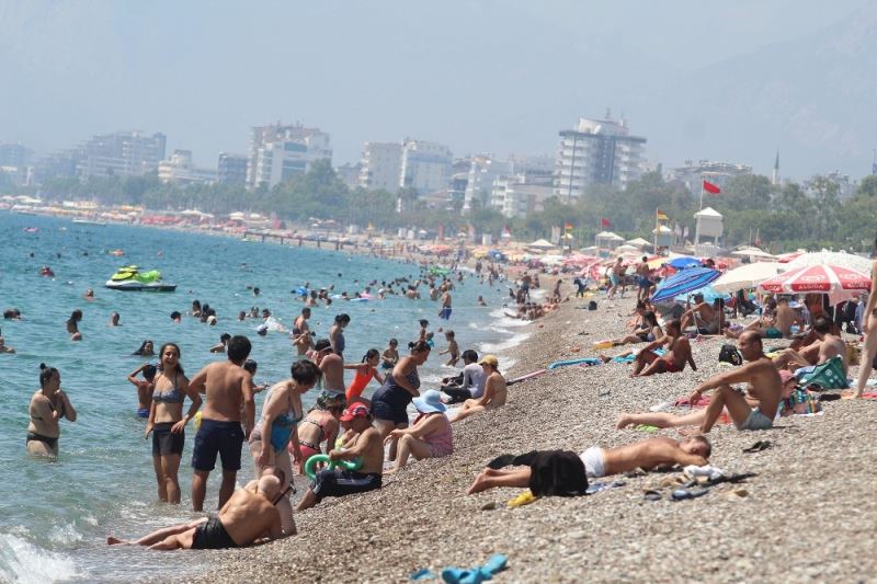 Turizm kenti Antalya’ya, Meteoroloji 4. Bölge Müdürlüğü Bölge Tahmin ve Uyarı Merkezince 2 gün önce yapılan sıcak hava etkisini giderek göstermeye başladı. Mevsim normallerinin 3-5 derece üzerinde seyredeceği sıcaklıklarının 4 Eylül Cuma gününe kadar etkisini devam ettireceği bildirildi. Bugün yüzde 77’lere ulaşan yüksek nemle birlikte kentteki bazı termometreler 43 dereceyi gösterdi. Deniz suyu sıcaklığı ise 28 derece olarak ölçüldü. Nemle birlikte bunaltıcı havadan etkilenenlerin adresi sahiller oldu. Dünyaca ünlü Konyaaltı Sahilini tercih eden tatilciler sıcak havaya rağmen yüzdü, güneşlendi. Denize yüzenler kadar kıyıda şemsiye altında oturanların da çoğunlukta olduğu görüldü. Kıyada oturanların zaman zaman sosyal mesafe kuralına uymadıkları görüldü. Denize girmeyenler ise Sahil Yaşam Parkı içindeki ağaçlar altında dinlendi.