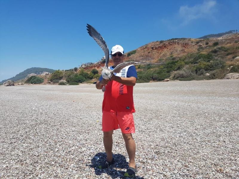 Kumluca ilçesinde denize girmek için Mavikent Sahili'ne giden Hüseyin Akyurt, bir martinin sesini duydu.