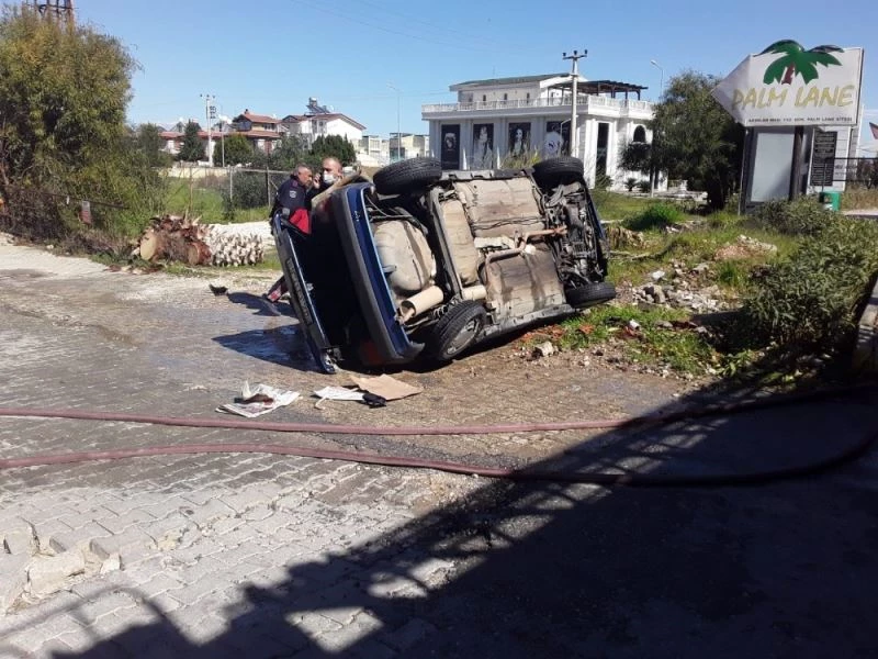 Antalya’da kaza yapan otomobil önce devrildi, sonra alev aldı