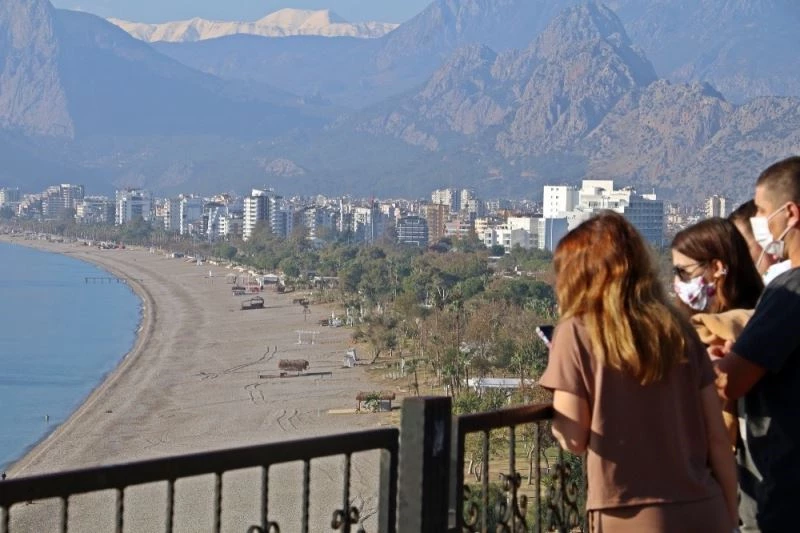 Turizmin başkenti Antalya’da yeni tip korona virüsle mücadele kapsamında dün akşam saat 20.00 itibarıyla başlayan sokağa çıkma kısıtlamasının sabahında kentin insan sirkülasyonunun yoğun olduğu Cumhuriyet Meydanı, Güllük Caddesi, Konyaaltı sahili boş kaldı. Kısıtlamadan muaf tutulanlar dışında dışarıda sadece sokak hayvanlarının olduğu görüldü. Yine kısıtlamadan muaf tutulan turistlerin erken saatlerde sahile gelerek denize girdiği gözlendi. Saatler 10.00’ı gösterdiğinde ise vatandaşlar evlerinden dışarıya çıkmaya başladı. Vatandaşlar ile saat 10.00-13.00 arası çıkmalarına müsaade edilen 65 yaş ve üzeri kişilerin sokağa çıkar çıkmaz gittikleri yer dünyaca ünlü Konyaaltı sahili ve sahili tepeden gören seyir terası oldu. Sahile gelen vatandaşların denize girdikleri, bazılarının da balık avlamak için yola koyulduğu görüldü.