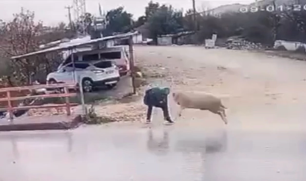 Turunçova Mahallesi'nde yolun karşısına geçmeye çalışan kişi, bir koçun boynuz darbesi sonucu yere düştü.