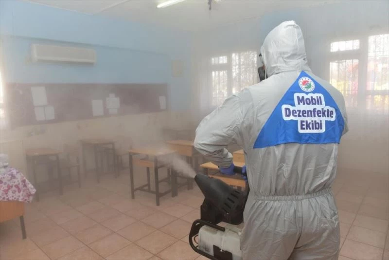 Kepez Belediyesinden yapılan açıklamaya göre, mobil dezenfekte ekibi, yüz yüze eğitime başlanacak eski köy ve belde statüsünde bulunan yerleşim bölgelerindeki okulların toplu kullanım alanlarından, sınıflara, konferans salonlarından, koridor ve lavabolara kadar her alanını dezenfekte etti.