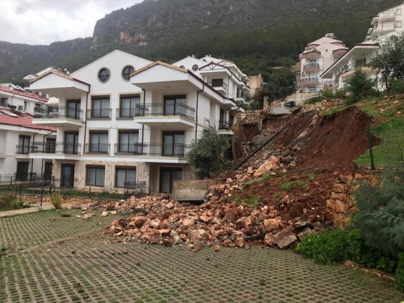 ANTALYA (AA) - Antalya'nın Kaş ilçesinde kuvvetli yağış nedeniyle istinat duvarının çökmesi sonucu bir otomobil kullanılamaz hale geldi, 3 katlı ev zarar gördü.