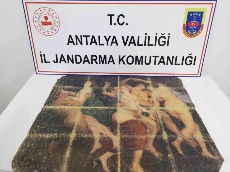 Antalya İl Jandarma Komutanlığı İstihbarat Şube Müdürlüğü, Gazipaşa İlçe Jandarma Merkez Karakol Komutanlığı ve JASAT ekiplerince, 1 şüphelinin tarihi eser kaçakçılığı yaptığı bilgisi alınması üzerine, Gazipaşa Cumhuriyet Başsavcılığı koordinesinde operasyon düzenlendi. İlçeye bağlı Pazarcı Mahallesi’ndeki M. C.’ye ait adrese gelen ekipler, yaptıkları aramada, yaklaşık 1 milyon TL değerinde ipek kumaşa resmedilmiş 91 x 83 ebatlarında kadın tablosu ele geçirildi.