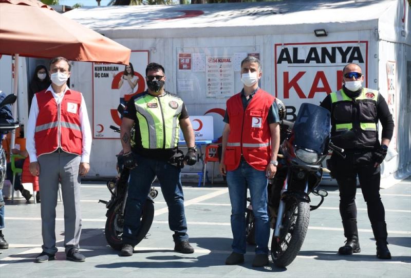 Türk Kizilayin azalan kan stokunu artirmak için baslattigi kan bagisina, Alanya'da bir grup motosiklet tutkunu destek verdi.