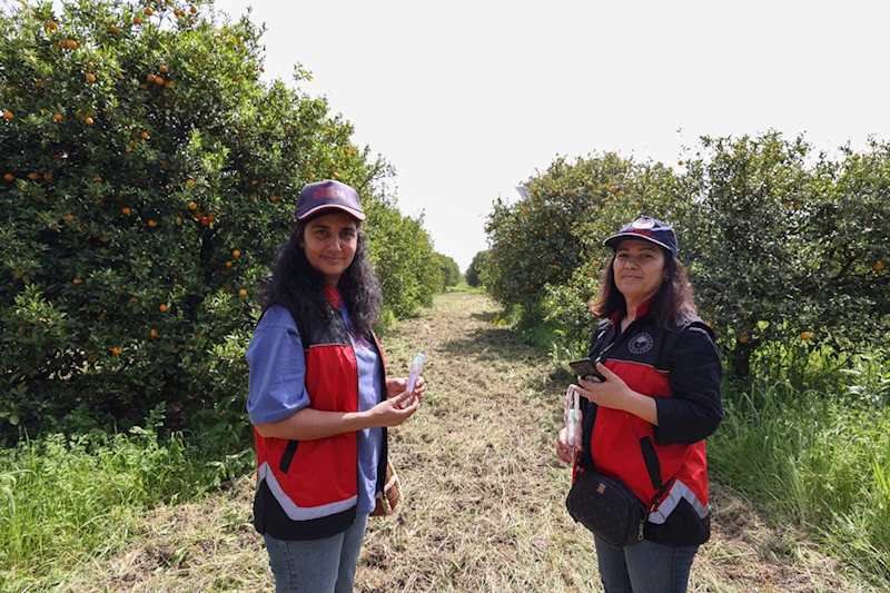 İl Tarım ve Orman Müdürü Şakir Fırat Erkal, BATEM Müdürü Abdullah Ünlü, bazı okullardan tarım alanında eğitim alan öğrenciler ile ziraat mühendisleri narenciye ağaçlarına "Trissolcus Japonicus" adı verilen faydalı böcekleri saldı.