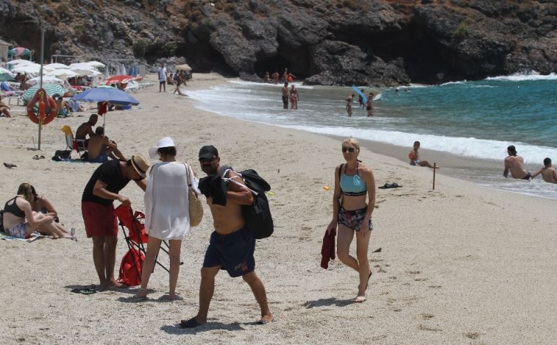 Antalya’nın Alanya ilçesinde nem oranının artmasıyla nem bulutları kentin üzerini kaplarken, sıcaktan bunalan yerli ve yabancı turistler sahillere akın etti.