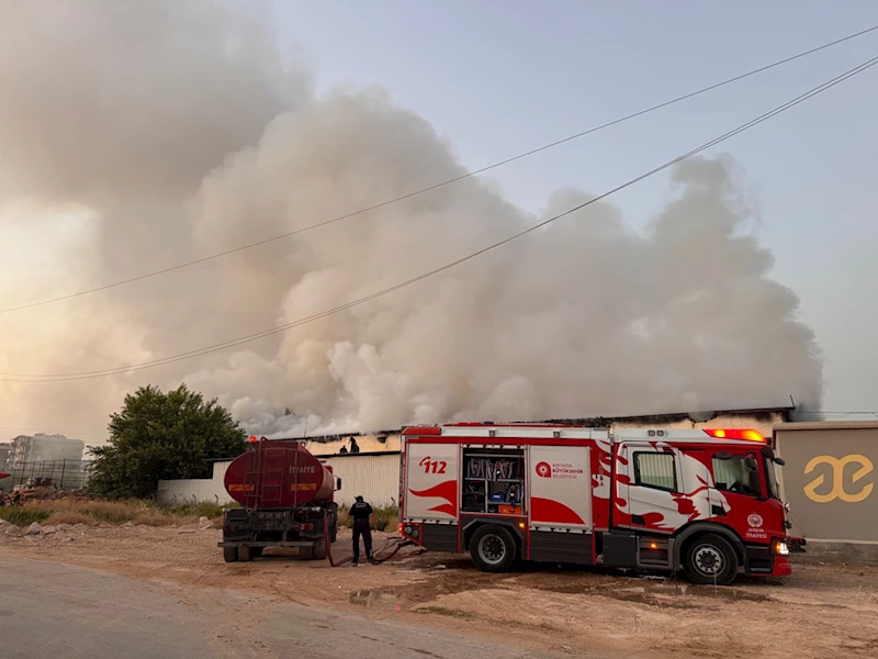 ANTALYA - Antalya'nın Kepez ilçesinde otel ekipmanının yer aldığı depoda çıkan yangın söndürülmeye çalışılıyor.