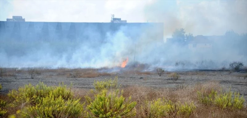 Göksu Mahallesi'ndeki otluk ve çalilik alanda henüz belirlenemeyen nedenle yangin basladi.