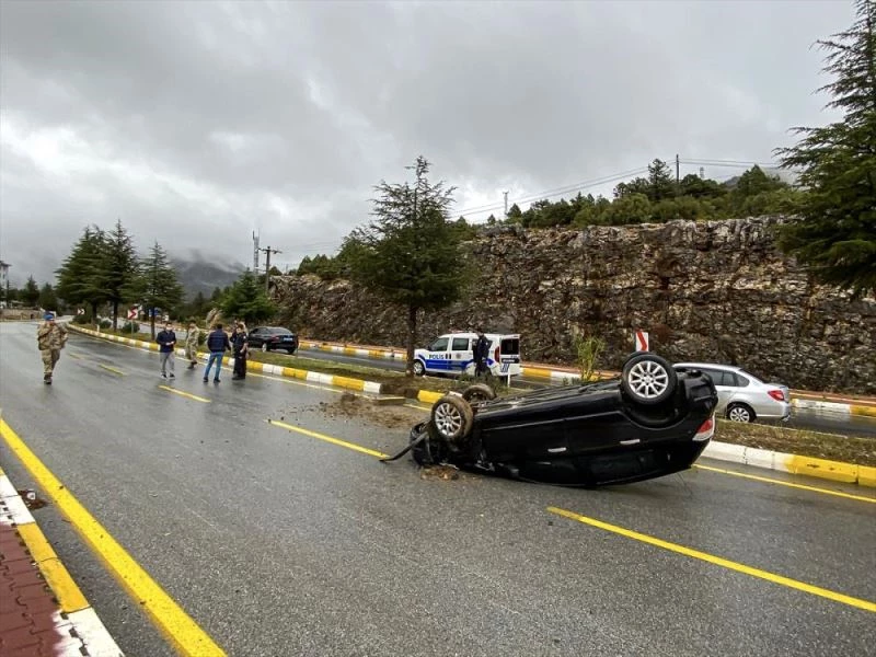 H.T'nin kullandığı 42 ELM 55 plakalı otomobil, sağanağın etkili olduğu Uzunyol mevkisinde devrildi.