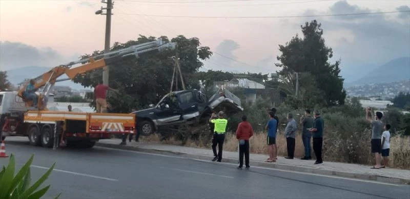Antalya'da otomobil elektrik direğine çarptı: 2 yaralı