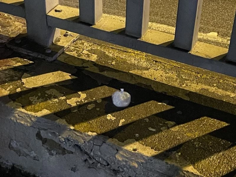 "Dur" ihtarına uymayarak kaçmaya başlayan şüpheli U.A. hareket halindeki otomobilden dışarıya bir şey attı. Durumu fark ederek bölgede arama yapan ekipler, poşet içerisinde bir miktar uyuşturucu ele geçirdi.