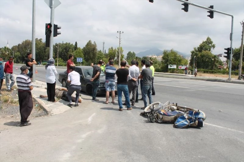 Anamur istikametine seyreden Ramazan Budanur'un kullandigi 44 ABV 262 plakali otomobil, Yeni Mahalle Nüfus Kavsagi'nda ayni istikamette ilerleyen yan seridindeki Mehmet Sen'in (59) idaresindeki 07 UY 738 plakali motosikletle çarpisti.