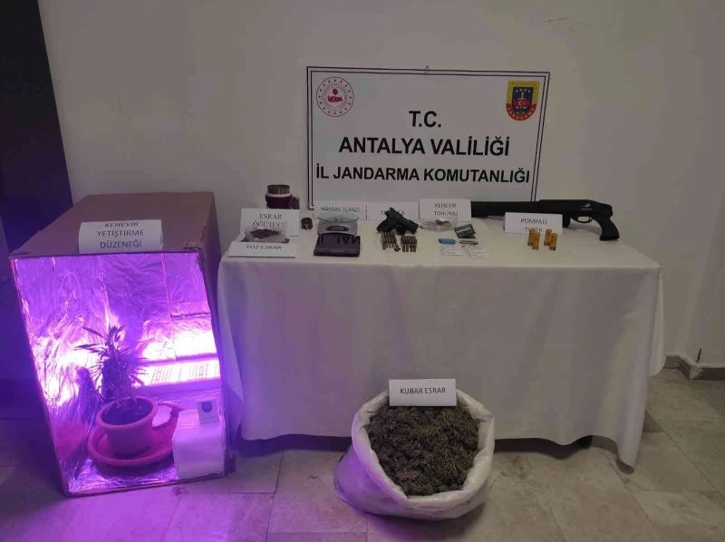 Antalya’da jandarma kuvvetlerinin bir ikamete gerçekleştirdiği operasyonda; 3,6 kilo kubar esrar, 118 gram toz esrar ve 1 kök kenevir bitkisi ele geçirdi. Olayla ilgili 1 şüpheli şahıs gözaltına alındı.