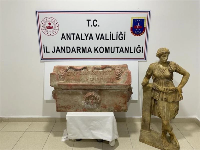 Antalya İl Jandarma Komutanlığı Kaçakçılık ve Organize Suçlarla Mücadele Şube Müdürlüğü ve Manavgat İlçe Jandarma Komutanlığı ekiplerince, eve operasyon düzenlendi. Aramada, Roma dönemine ait mermer heykel ile lahit ele geçirildi.
