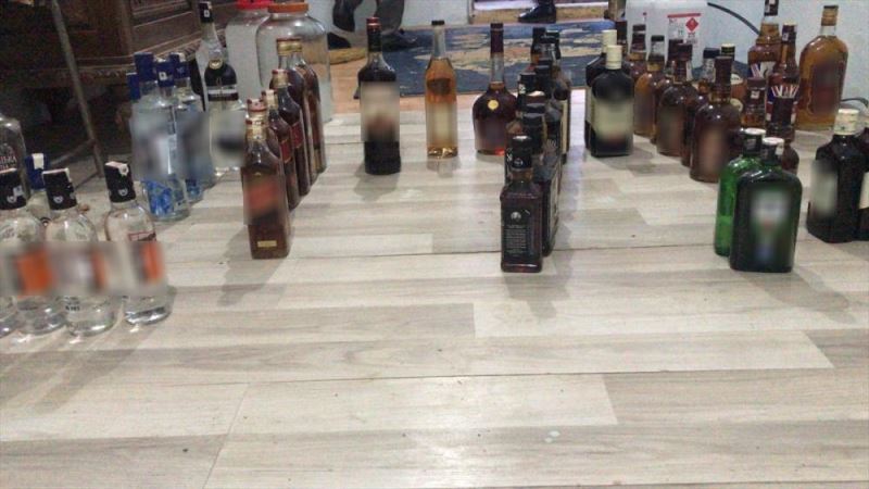 V.D'nin ilçe merkezindeki ve H.B'nin Antalya merkezdeki evlerine düzenlenen operasyonda 605 litre etil alkol, 79 şişe sahte içki, 10 litre sahte alkol, 11 boş içki şişesi, 5 litrelik boş etil alkol bidonu ve 25 etiket ele geçirildi.