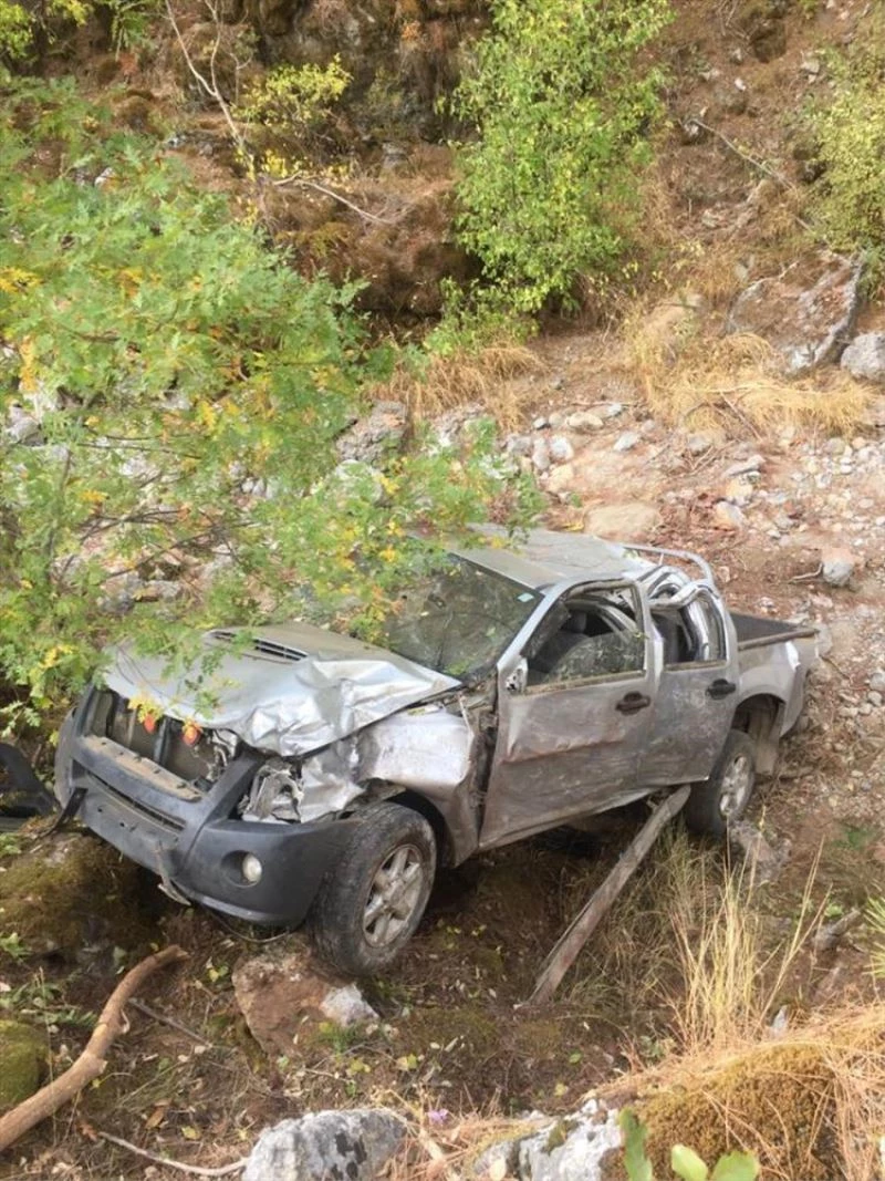 Hasan Aratat'in (71) kullandigi 07 HKH 93 plakali pikap, Güzelbag Mahallesi Karinca Deresi mevkisinde sarampole yuvarlandi.