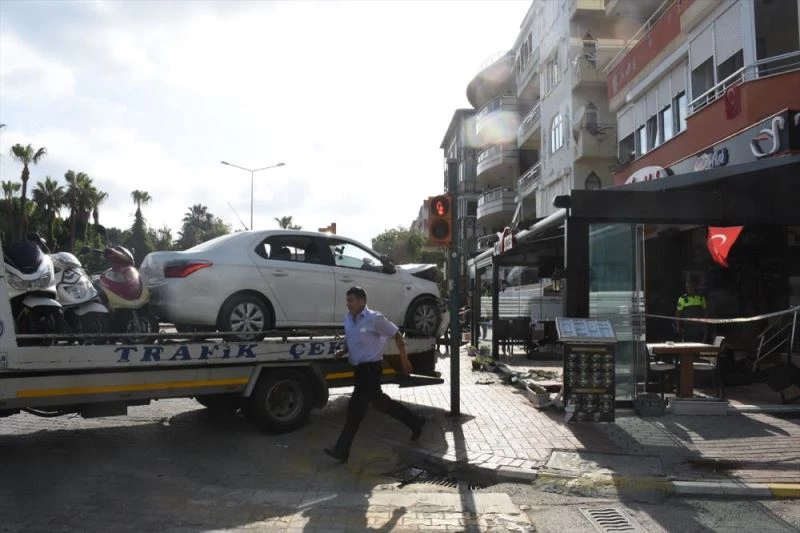 Güllerpinari Mahallesi Sevket Tokus Caddesi'nde, sehir merkezi yönüne giden, sürücüsü henüz belirlenemeyen 06 BFB 859 plakali otomobil, iddiaya göre kirmizi isikta durmadi. Bu sirada kavsaktan dönen hafif ticari araca çarpan otomobil, önce kaldirima çikarak 2 yayaya çarpti, sonra bir restorana girdi.
