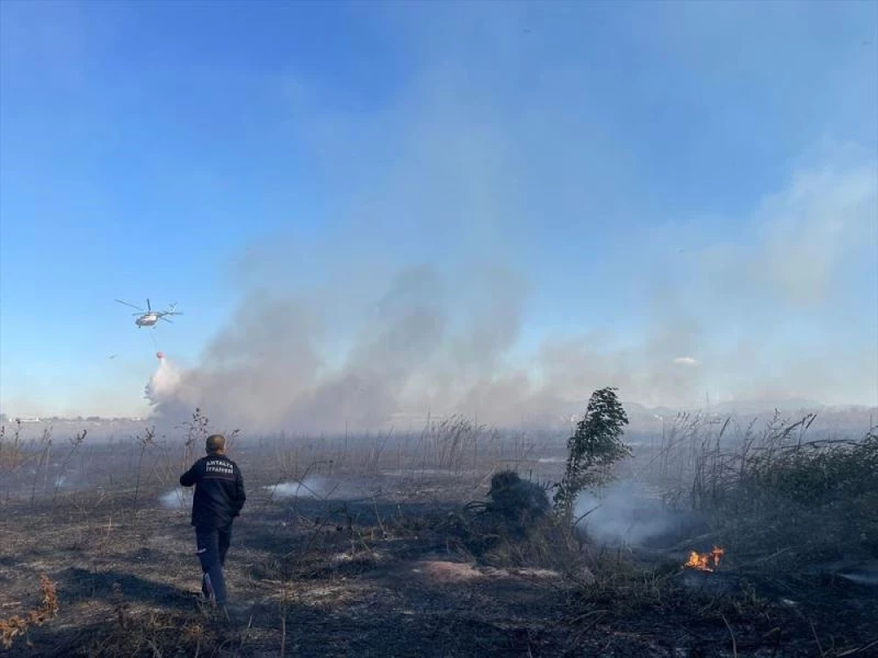 ANTALYA - Antalya'nın Aksu ilçesinde seraların bulunduğu sazlık alanda çıkan yangına ekipler havadan ve karadan müdahale ediyor.