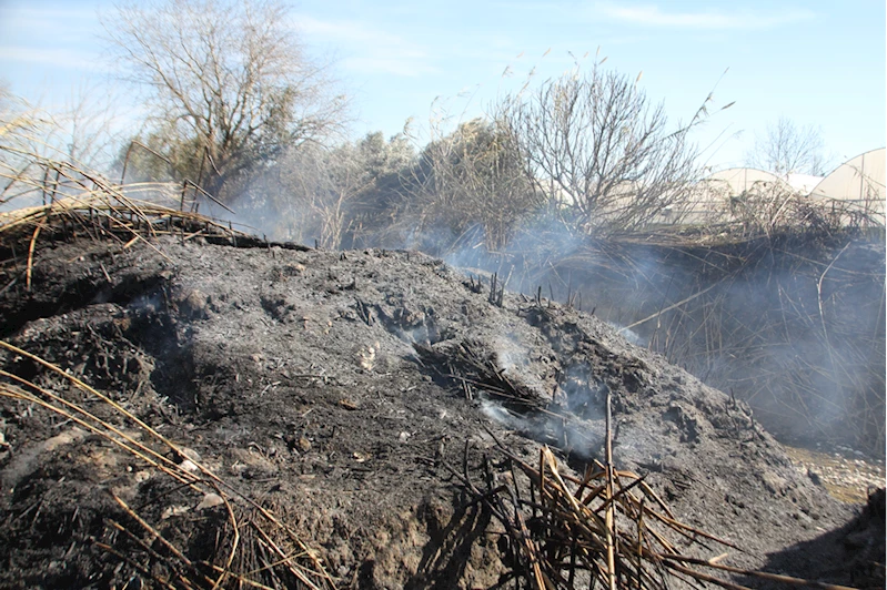 Ekiplerin çalışmasıyla kısa sürede söndürülen yangın, bir seranın naylonlarına ve yaklaşık 2 dönüm sazlık alana zarar verdi.