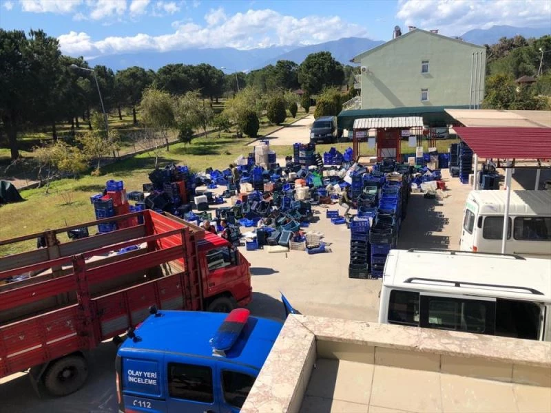 Beykonak Mahallesi Akmaz mevkisinde iki hurda deposunda çalıntı 5 bin sebze ve meyve kasası, Kumluca ve Finike Belediyelerine ait 10 metal geri dönüşüm konteyneri, su dinamosu ve 2 büyük tip akü ele geçirildi.
