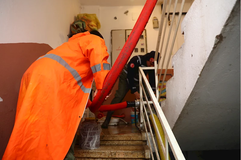 Su baskını yaşanan ev ve iş yerlerinde temizlik yaparak, kullanılamaz hale gelen eşyanın tahliyesini gerçekleştiren ekipler, sokak ve cadde temizliğini de sürdürdü.