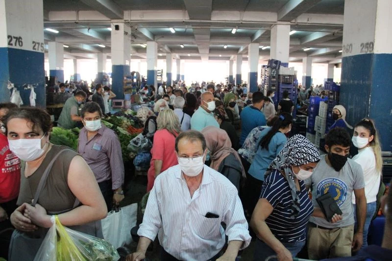 Antalya’da semt pazarında korkutan tam kapanma yoğunluğu