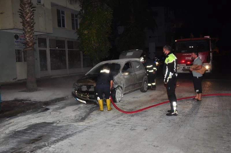 Itfaiye ekiplerince müdahale edilerek söndürülen yanginda araçta hasar olustu.