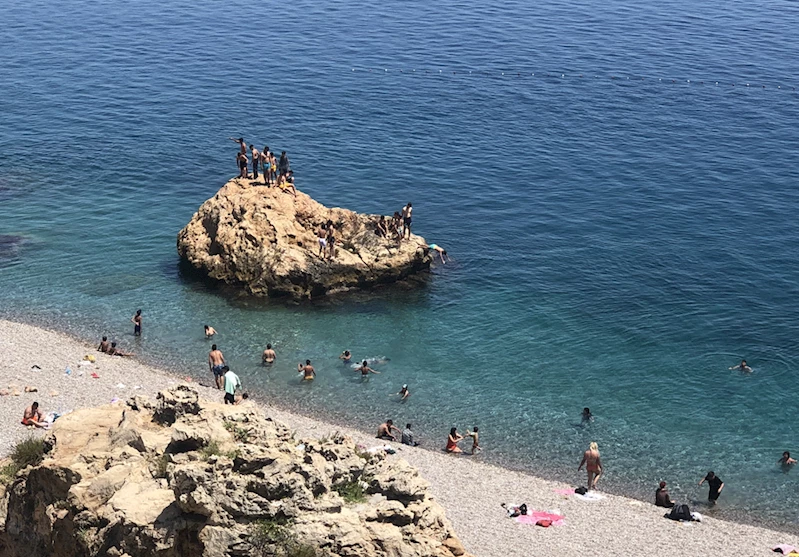 Bazı vatandaşlar kayalıklardan denize atlarken bazıları da gölgede denizi izlemeyi tercih etti.