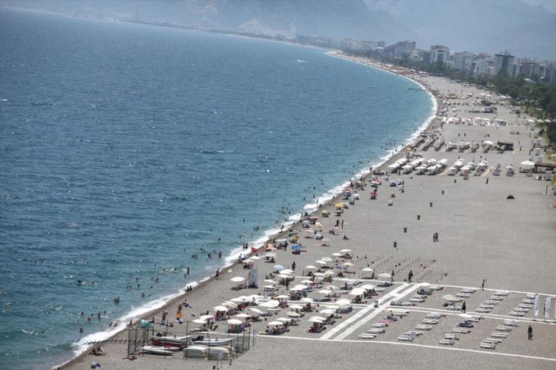 Yogunlugun olustugu sahillerde tatilciler ile kent sakinleri, sezlong ve semsiyelerin sosyal mesafeye göre yerlestirildigi plajlarda, denizde serinlemeye çalisti.