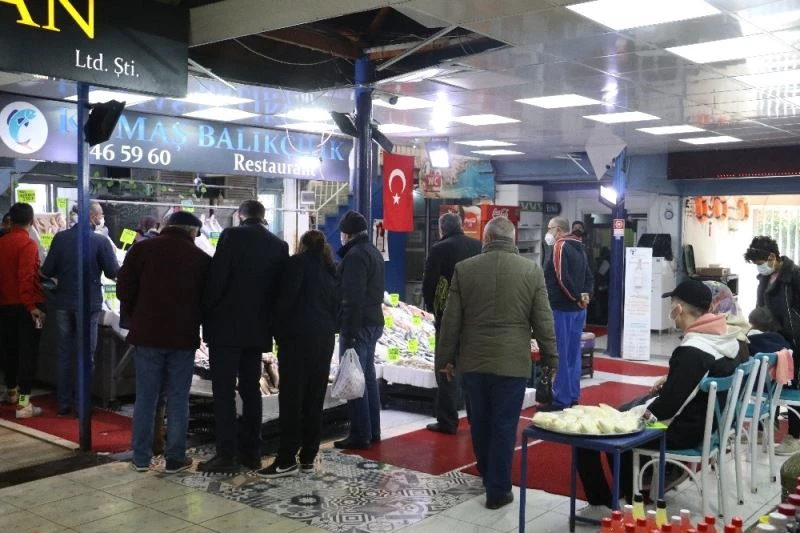 Antalya’da sokağa çıkma kısıtlaması öncesinde balık tezgahlarında yoğunluk
