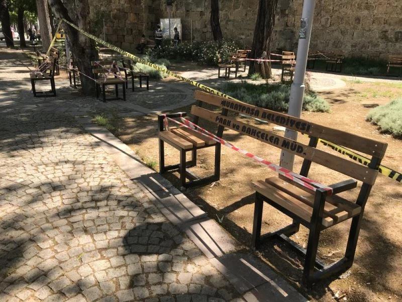 Parklara, sosyal mesafe kurallari kapsaminda 1,5 metre mesafeli banklar yerlestirildi. Banklarda oturmayi tercih eden vatandaslarin arasindaki mesafe korunacak.
