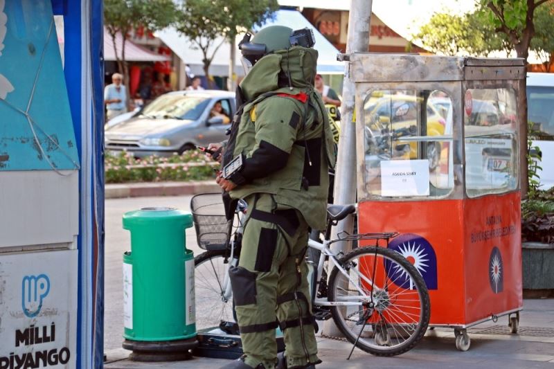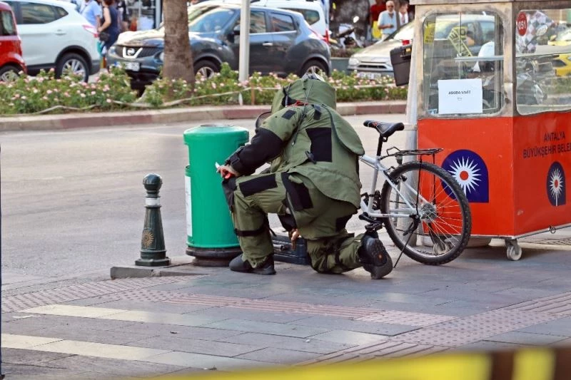 Olay saat 16.00 sıralarında Muratpaşa ilçesi Güllük Caddesi üzerinde meydana geldi. Edinilen bilgiye göre, kaldırımdaki çöp konteynerinin kenarına bırakılmış valizi görenler durumu polise bildirdi. İhbarın ardından bölgeye çok sayıda polis sevk edildi. Trafik ekipleri caddeyi araç ve yaya geçişlerine kapatarak önlem aldı. Vatandaşların meraklı gözlerle izlediği olayda, güvenlik şeridini ihlal eden vatandaşlar bölgeden uzaklaştırıldı. Bomba imha uzmanının kontrol ettiği valizin içerisinde ise bir adet kullanılmış maske ve atık poşetler çıktı. Valiz belediye temizlik personeli tarafından alınırken, kapatılan trafik tekrar açıldı.