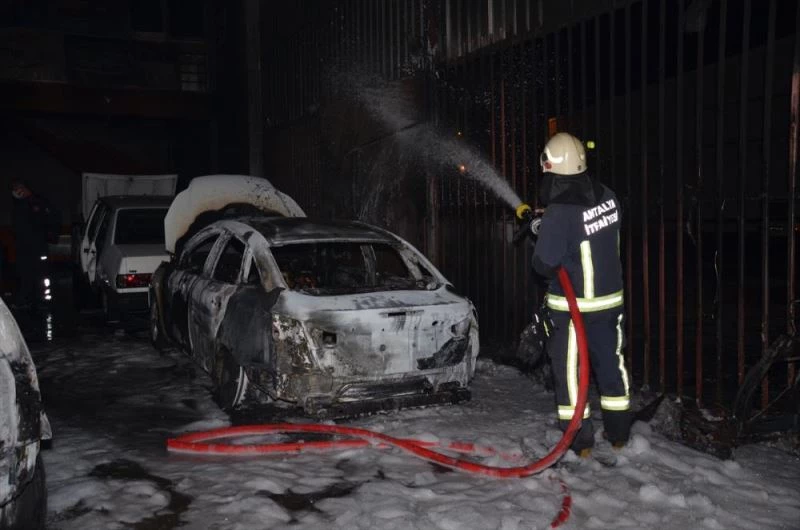 Antalya'da tamirhanede çıkan yangın 4 araçta hasara neden oldu