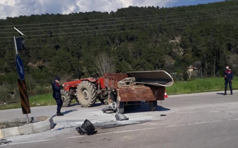 Gebiz Mahallesi Kapuz Çayı Köprüsü mevkisinde Abdullah Yiğit'in (52) kullandığı 07 YK 270 plakalı traktör ile Gökhan Eser Keser idaresindeki 54 D 5936 plakalı motosiklet çarpıştı.