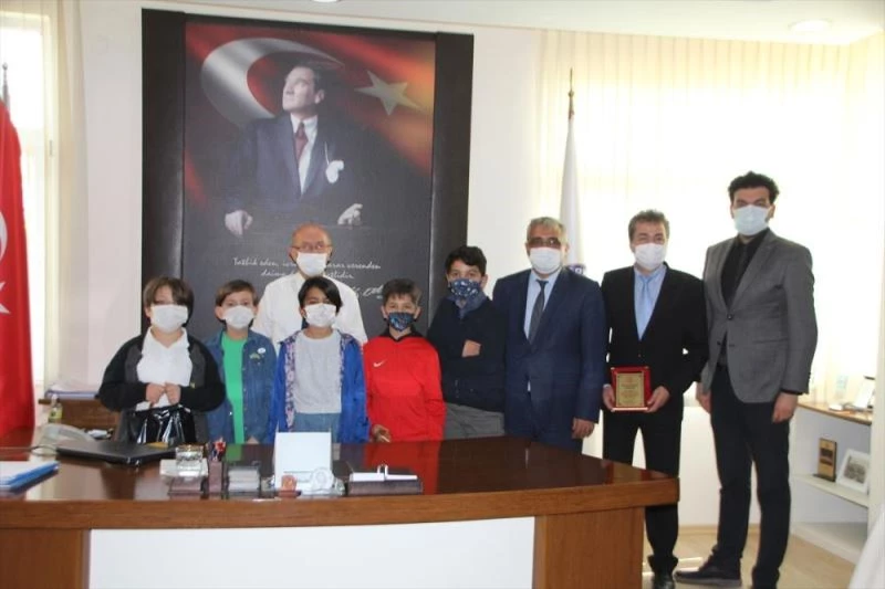 İlçe Milli Eğitim Müdürü İkram Ekiz, Okul Müdürü Mustafa Toşur, Akıl ve Zeka Oyunları Eğitmeni Danışman Öğretmen Öner Kaya, şampiyonada derece giren öğrenciler Mete Yağız Can, Görkem Kır, Cemre Bozkurt, Arif Ege Okudan ve Hüseyin Uras Kaya, Kaymakam Mehmet Kurdoğlu'nu makamında ziyaret etti.