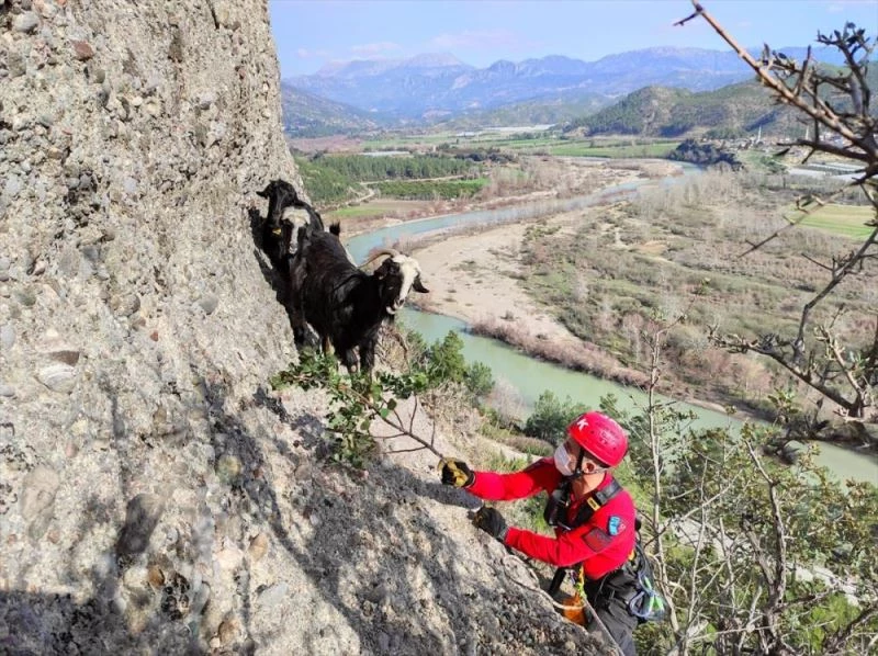 ANTALYA (AA) - Antalya'nın Serik ilçesinde uçurumda mahsur kalan 3 keçiyi jandarma ekibi kurtardı.