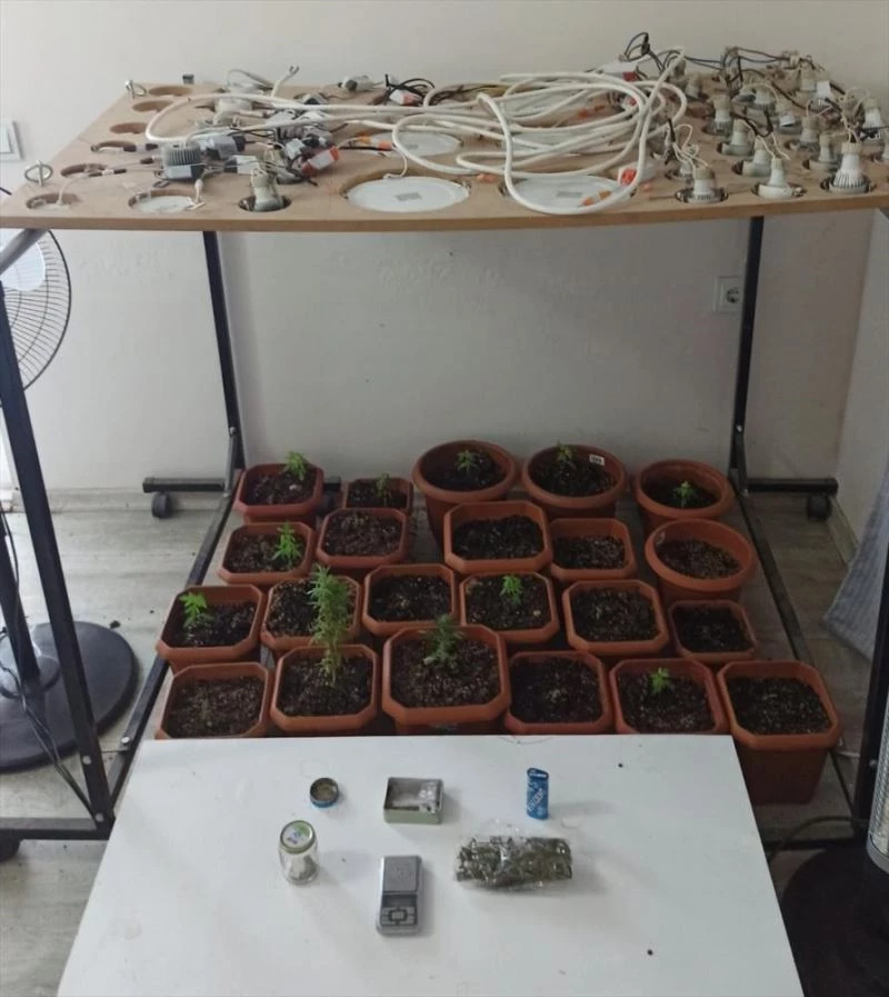 Alanya'da Avsallar Mahallesi’nde M.M.P'nin evinde uyuşturucu imal edip sattığının tespit edilmesi üzerine ev ve eklentilerinde yapılan aramada, 12 gram kubar esrar, saksılar içerisinde 18 kök Hint keneviri, kenevir yetiştirmek için kurulmuş ısıtma ve aydınlatma düzeneği ile hassas terazi bulundu.