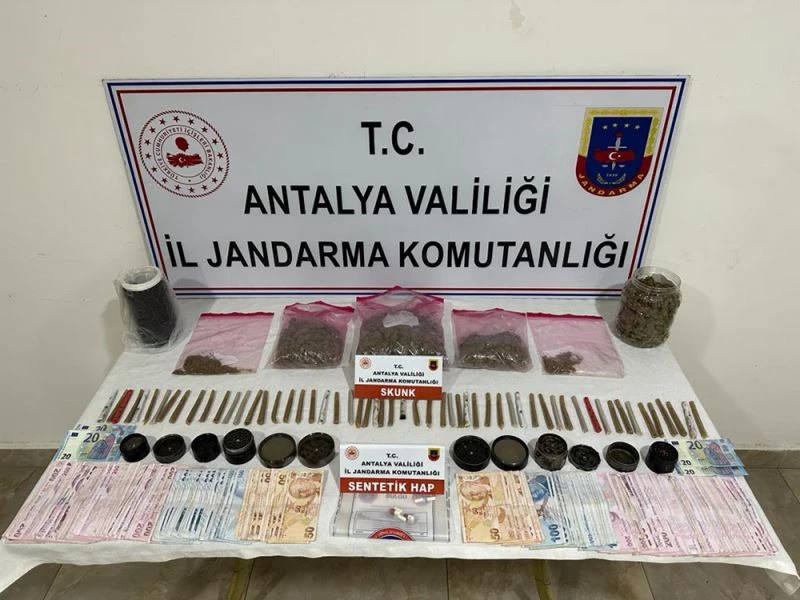 Side Mahallesi'nde yakalanan şüpheli şahsın ikametinde yapılan aramada, 1050 gram skunk, 56 adet satışa hazır halde içimlik skunk, 6 adet sentetik hap, 9 adet uyuşturucu madde öğütme aparatı ele geçirildi. Suç gelirinden elde edildiği değerlendirilen 44 bin lira ve 80 avroya ise el konuldu.