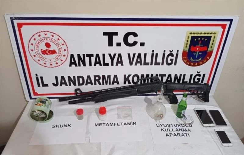 Aramada, 50 gram metamfetamin, 20 gram skunk, uyuşturucu madde kullanma aparatı ile bir av tüfeği ele geçirildi.