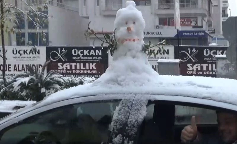 Bir vatandaş ise kardan adam yaptı. Vatandaşlar aracın üzerine koydukları kardan adam ile şehir turu attı. 31 yıl önce yağan karı görmediğini belirten sürücü, “31 sene önce görmedim. Bu sene görmek nasip oldu. Bir kardan adam yaptık. Onu da gezdirelim dedik” sözlerine yer verdi. Bir başka vatandaş ise kova ile kar toplamanın sevincini yaşadı.