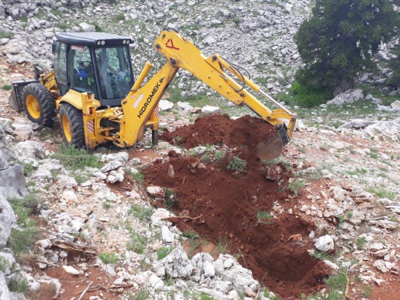 Doga Koruma ve Milli Parklar Genel Müdürlügü'nün Giden Gelmez Yaban Hayati Gelistirme Sahasi'nda çalisma yapan belediye ekipleri, çogunlugu kayalik olan sarp arazide yol çalismalarini sürdürdü.