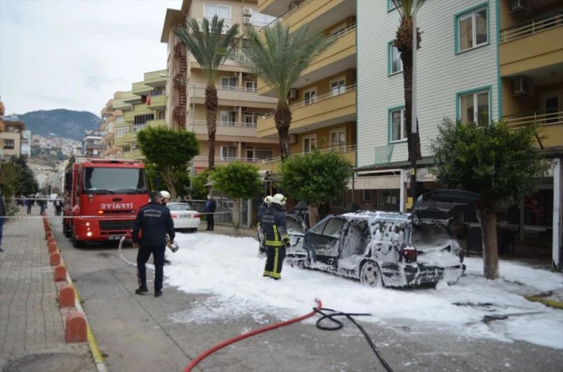 ANTALYA (AA) - Antalya'nın Alanya ilçesinde çalıştırıldığı sırada aniden alev alan otomobil yanarak kullanılamaz hale geldi.