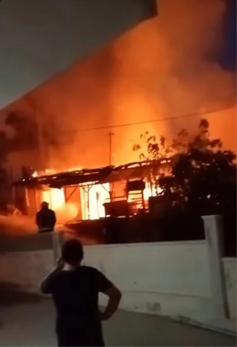 Antalya’da tek katlı gecekondu çıkan yangında kül oldu.