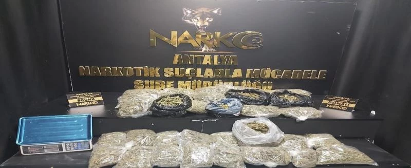 Antalya Narkotik Suçlarla Mücadele Şube Müdürlüğünce uyuşturucu maddelerin, uyuşturucu ticaretinin ve kullanımının engellenmesi amacıyla yapılan çalışmalarda; A.D. ve Ü.D. isimli şahısların temin ettikleri yüklü miktardaki uyuşturucu maddeyi Muratpaşa ilçesi Yıldız Mahallesinde bulunan ikamette depoladıkları ve piyasaya sürecekleri ihbarı alındı. İhbarı değerlendiren Narkotik Suçlarla Mücadele Şube Müdürlüğü, bahse konu adrese operasyon düzenledi. 21 Aralık Salı günü gerçekleştirilen operasyonda A.D. ve Ü.D. isimli şahısların ikametinde ve araçlarında yapılan aramada daralı 20 kilo 240 gram skunk esrar, daralı 755 gram toz esrar maddesi ile 1 adet hassas terazi ile ele geçirildi.
